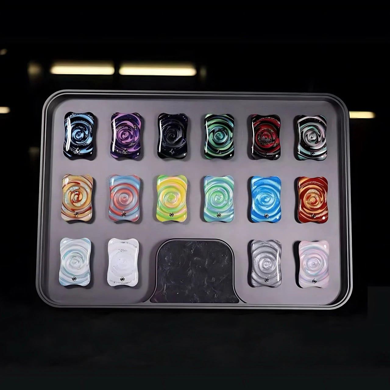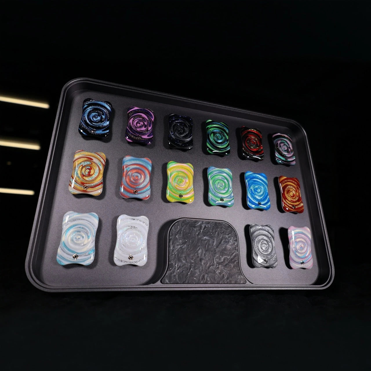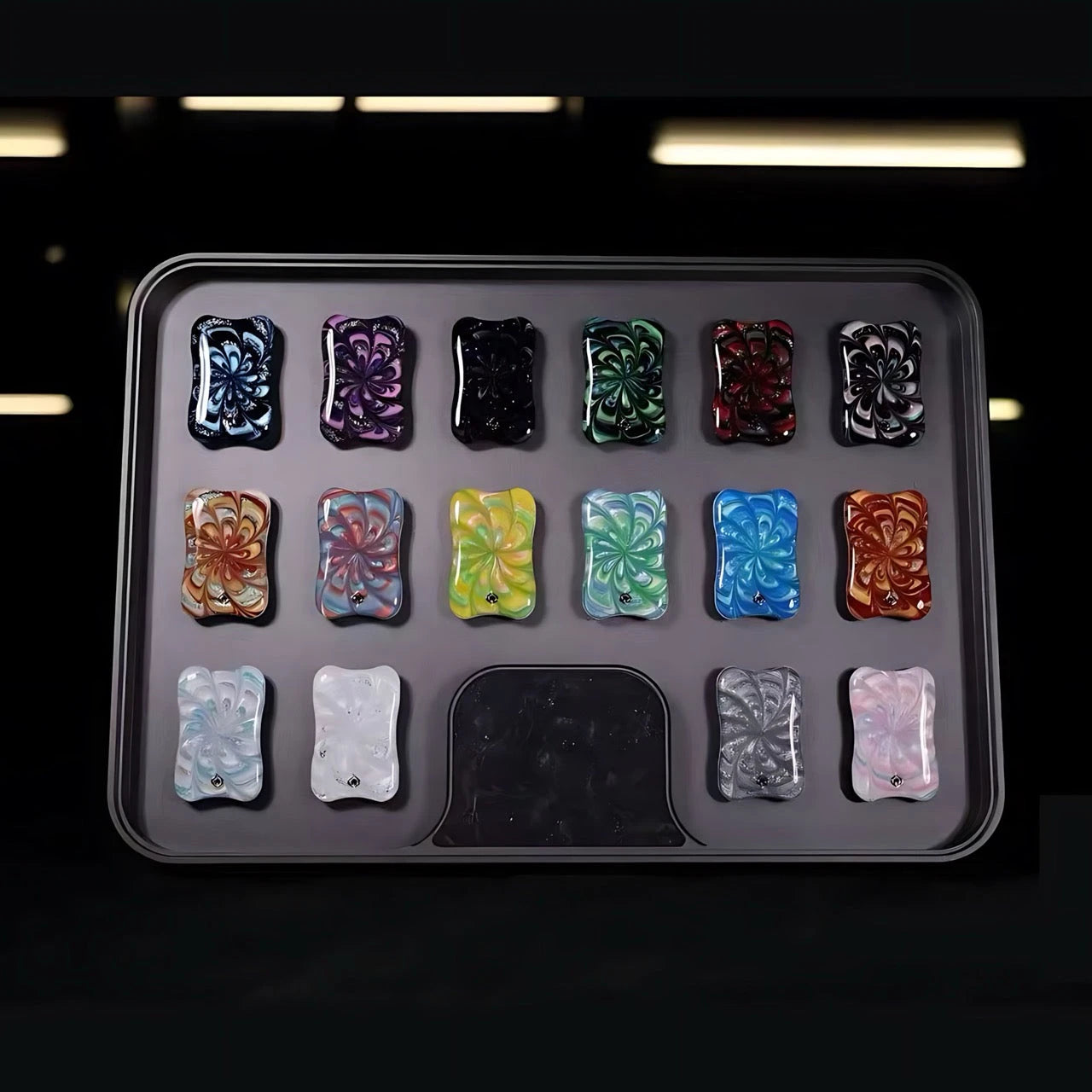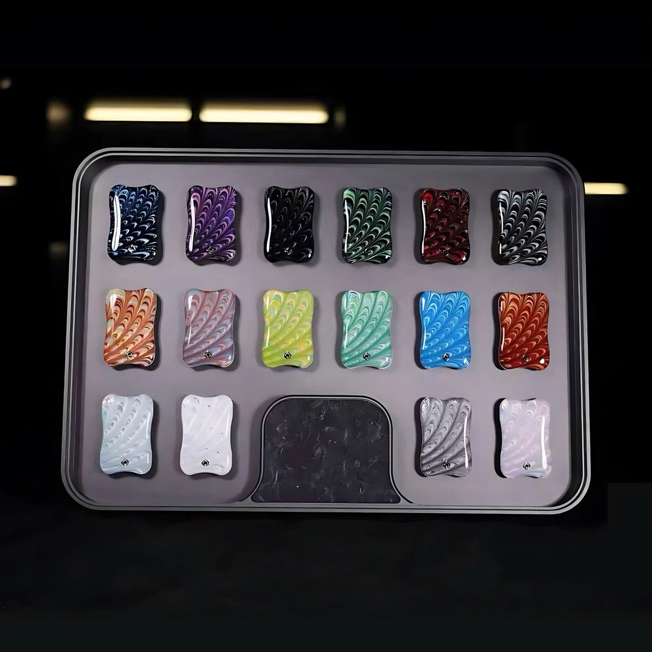 Official release: 2025 Sand Flow Collection Face Covers, equipped with an adjustable aluminum display tray. Each series contains 16 sand flow face covers (one of each pattern).