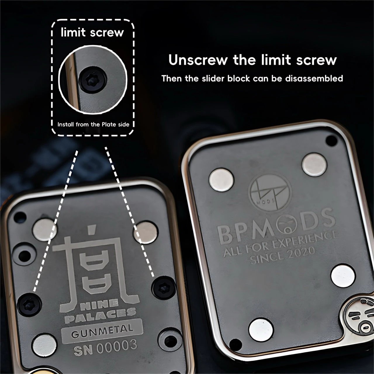 Core Structure: The BPMODS Nine Grid Mechanical Slider features a basic structure with upper and lower metal bodies paired with PEEK guides. It has 9 spring holes to ensure the stability and smoothness of mechanical operation. The product supports quick disassembly and assembly. Just unscrew the limit screw installed from the sticker direction, and you can easily disassemble the fidget slider for debugging, which is convenient and efficient. Meanwhile, 16 types of spring beads with different parameters are included in the package, eliminating the need for additional purchases and meeting users' diverse adjustment needs for the toy's performance.