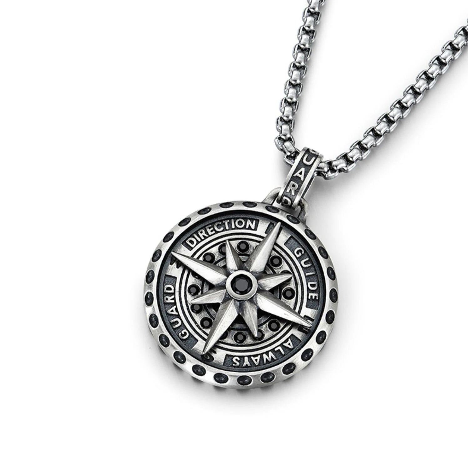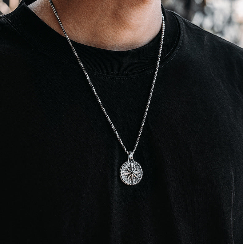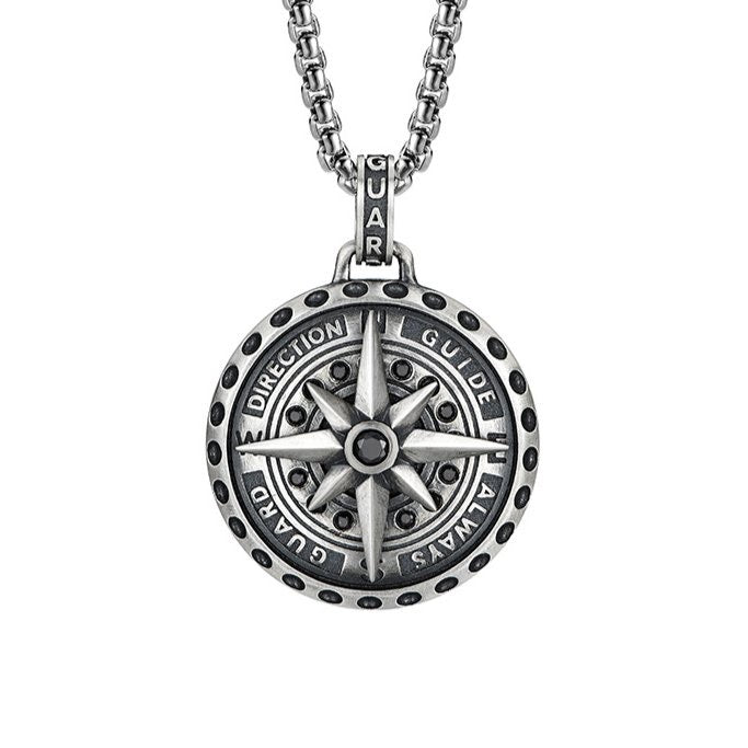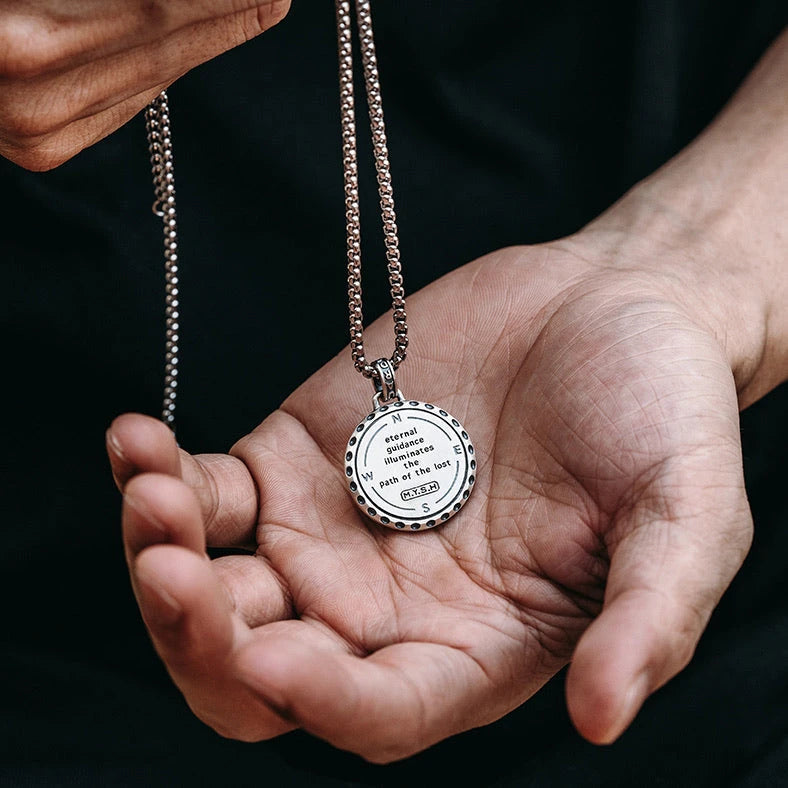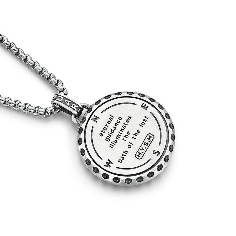 The Polaris Nautical Compass Pendant features a rotatable Polaris pointer that you can turn to relieve stress when you're busy. On the back of the pendant is engraved the sentence "eternal guidance illuminates the path of the lost."