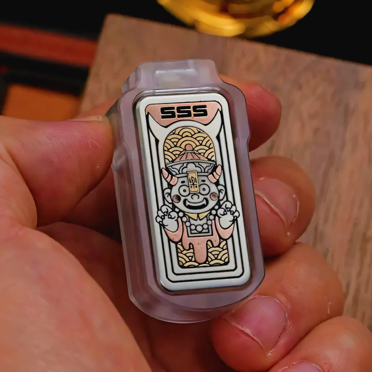 Exquisite Carving: The main bodies of the two slider blocks adopt a stainless steel stonewashed process, with the surface inlaid with red copper, brass, and white copper, featuring a solid texture and durability. The YOLO style slider block (Ghost Zhong) has a three layer long and dense stroke, with a PEI middle plate in the middle. The SSS style slider block (Happy Judge) has a two layer dense stroke. With a tough appearance, it supports the replacement of SSS series Plates.